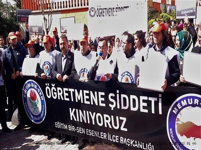 “Milletin çocuklarını eğitmekten başka amacı olmayan öğretmenlerimize yönelik saldırıları bir kez daha kamuoyuna taşımak için bu gün buradayız. Bugün önünde bulunduğumuz Esenler Hasip Dinçsoy İlkokulu öğretmenlerinden Duygu GALAPBAR arkadaşımız maalesef cehaletin kurbanı seçilmiş, Öğrencisini eğitmek ve topluma kazandırmaktan başka hiçbir amacı olmayan öğretmenimiz görevi başında iken bir öğrencinin özel güvenlikçi teyzesi tarafından darp edilerek şiddete maruz kalmıştır. Bu menfur saldırıyı şiddetle kınıyor, protesto ediyoruz. Velilerimizin en değerli varlıkları biz öğretmenlere emanet edilen çocuklarıdır. Geleceğimiz olan çocuklarımızla ilgili yaşanılan problemlerin çözümü de aynı hedefte yürüyen eğitim dünyasının paydaşlarının karşılıklı diyalogudur. Öğretmene yönelik en basitinden en ağırına kadar hiçbir şiddet türü yaşanan sorunların çözümü olmamıştır ve olmayacaktır.